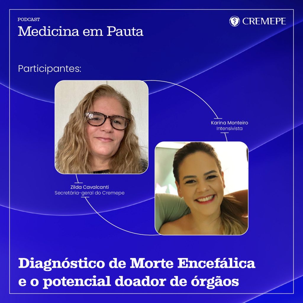 Já está disponível no spotify e portal do Conselho Regional de Medicina de Pernambuco (Cremepe) mais um episódio do podcast do Medicina em Evidência – o podcast do Cremepe. Este episódio tem a apresentação é da secretária-geral do Cremepe, Zilda Cavalcanti em uma conversa com a médica intensivista, Karina Monteiros, que é da Central de Transplantes de Pernambuco. As temáticas em questão foram o diagnóstico da morte encefálica e a manutenção do potencial doador de órgãos.